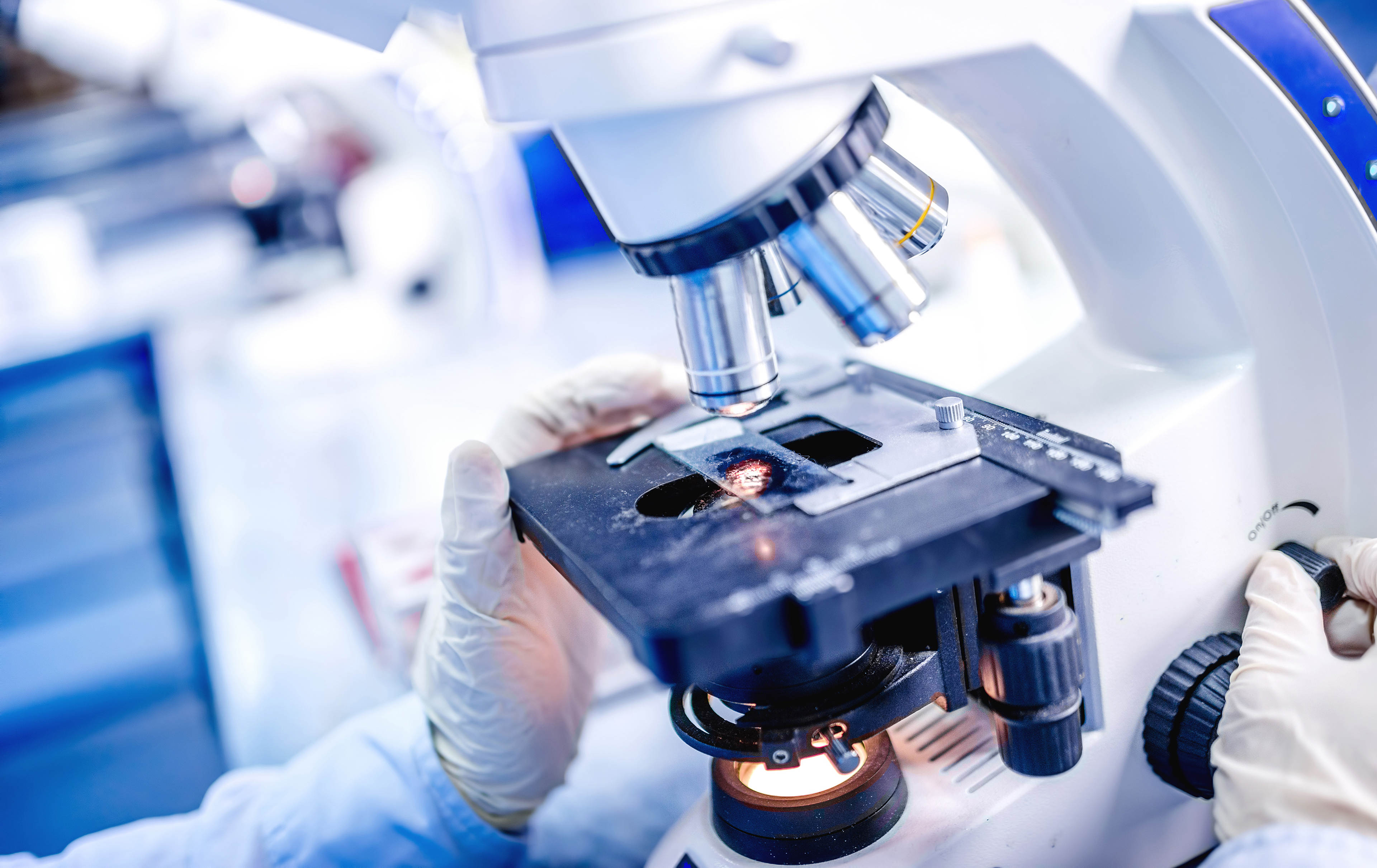 bogdanhoda - Details of medical laboratory, scientist hands using microscope for chemistry test samples